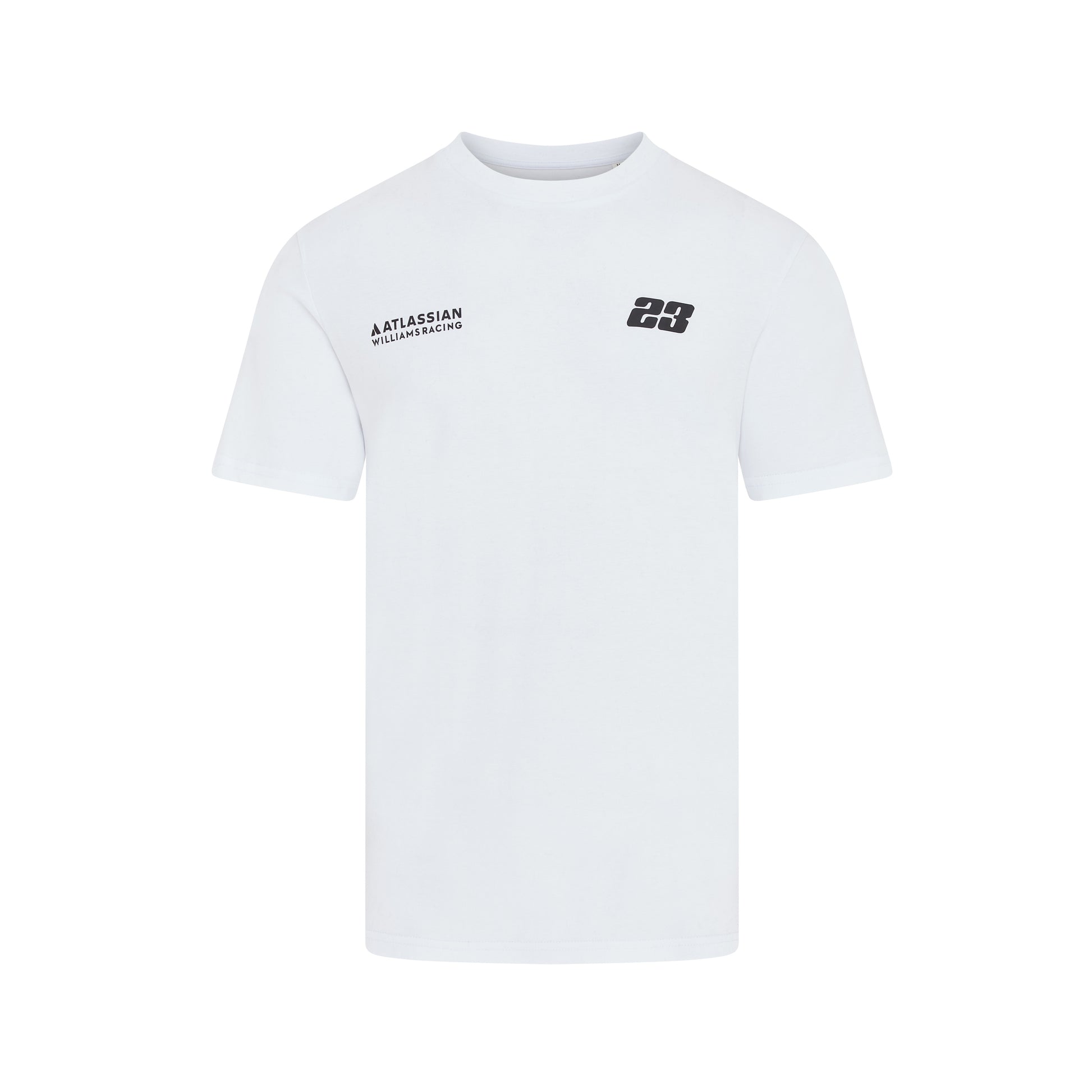 Represent Williams and one of the fastest drivers on the grid with this Williams Racing X REFLO Alex Albon Short Sleeve Tee in White. Showing his racing number 23 on the front and a stylised graphic of Alex on the back, this Tee is a great addition to any fans wardrobe. Using REFLO's recycled plastic fibers, this tee is comfortable, eco-friendly and high-quality. Grab it before it races of the shelves.