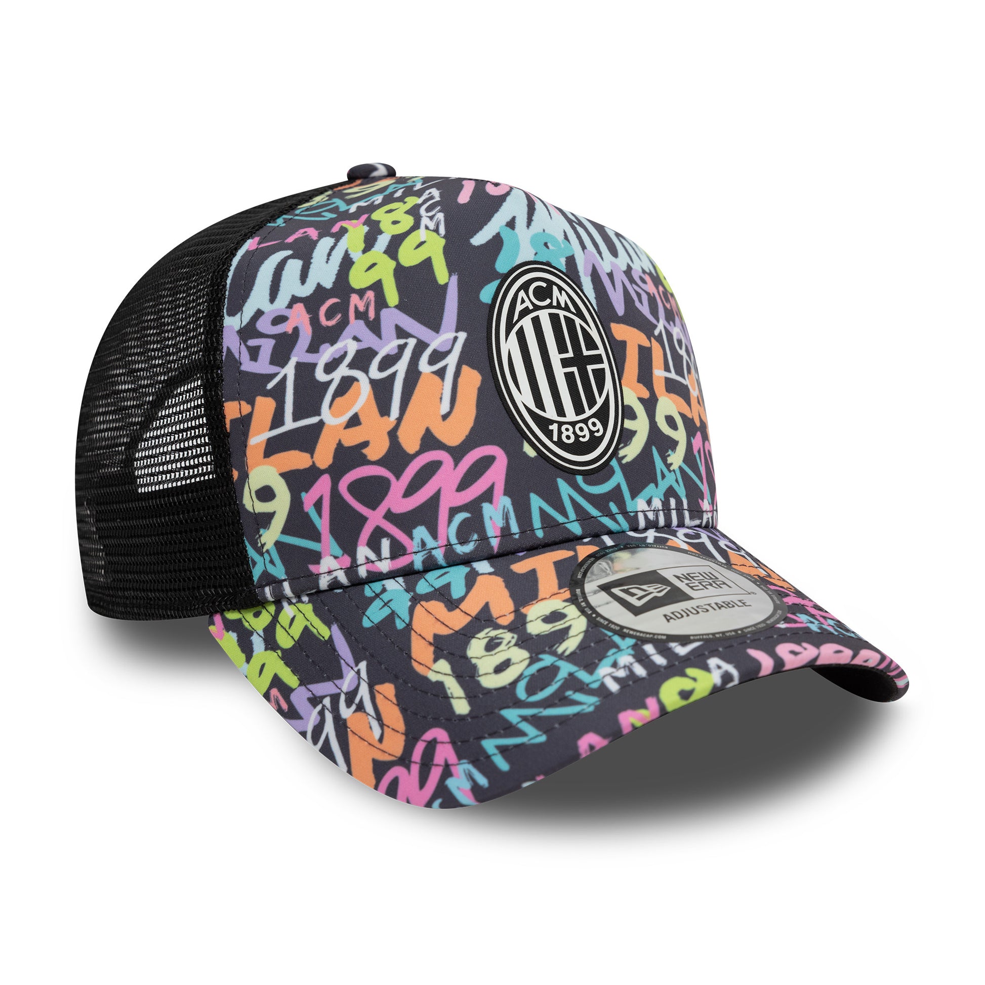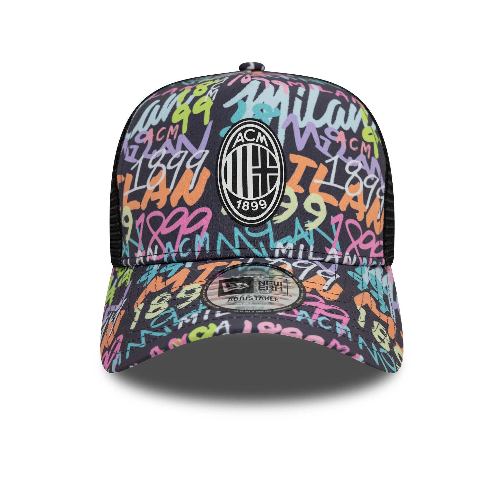Show your unrivaled support for the Rossoneri in the New Era AC Milan Grafiti AOP EF Trucker in Black. With a boisterous graffit print plastered all over, this cap is perfect for any loud and proud fan who favours the red side of Milan. It features the iconic ACM logo and an adjustable strap, suitable for most adult head shapes and sizes.