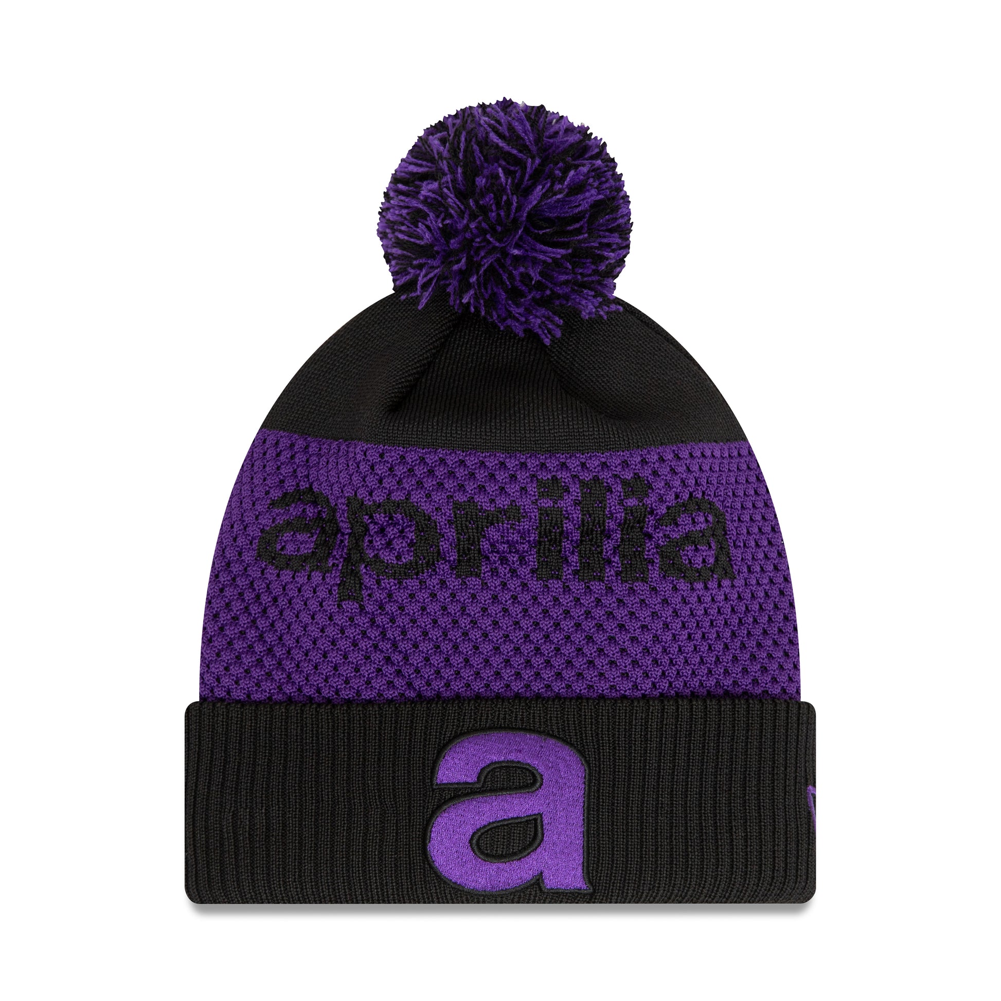 Aprilia Wordmark Pom Cuff Beanie Adults - Black/Purple