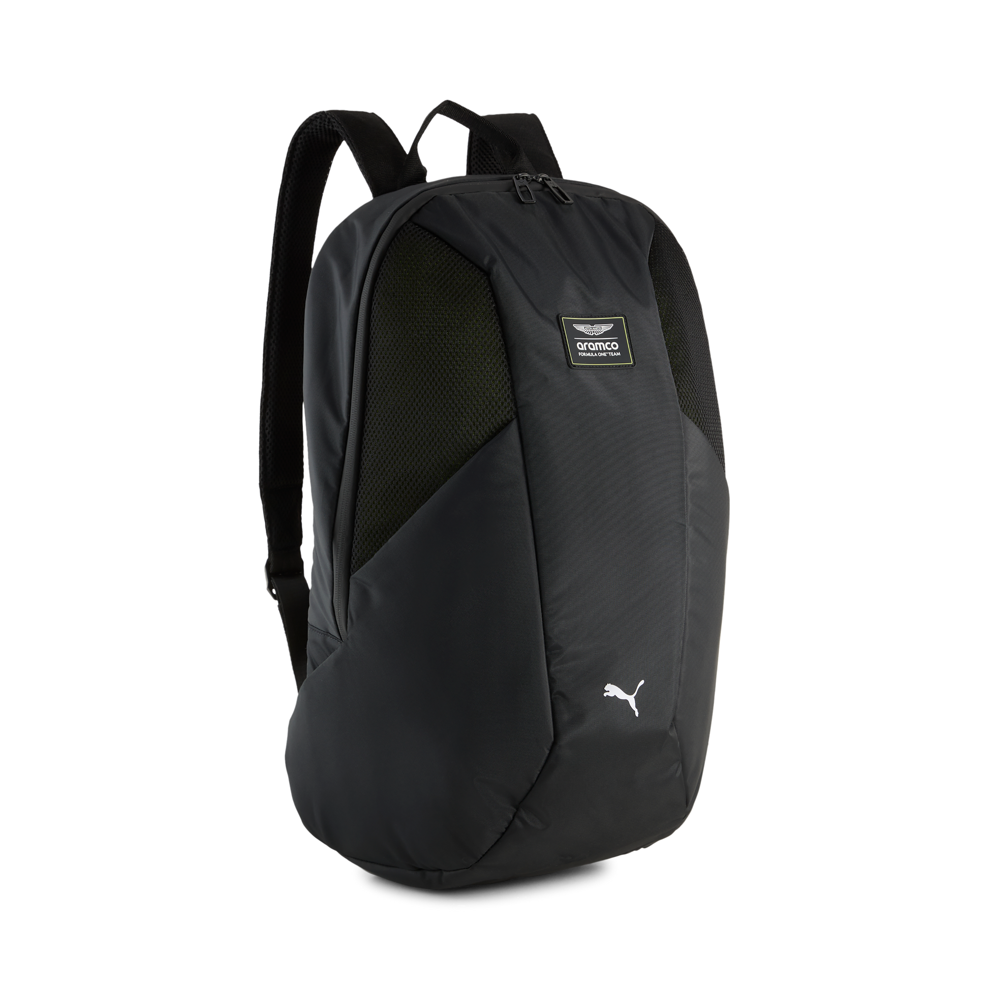 The Aston Martin F1 Backpack Unisex - Black combines practical everyday storage with sleek Formula 1 style.