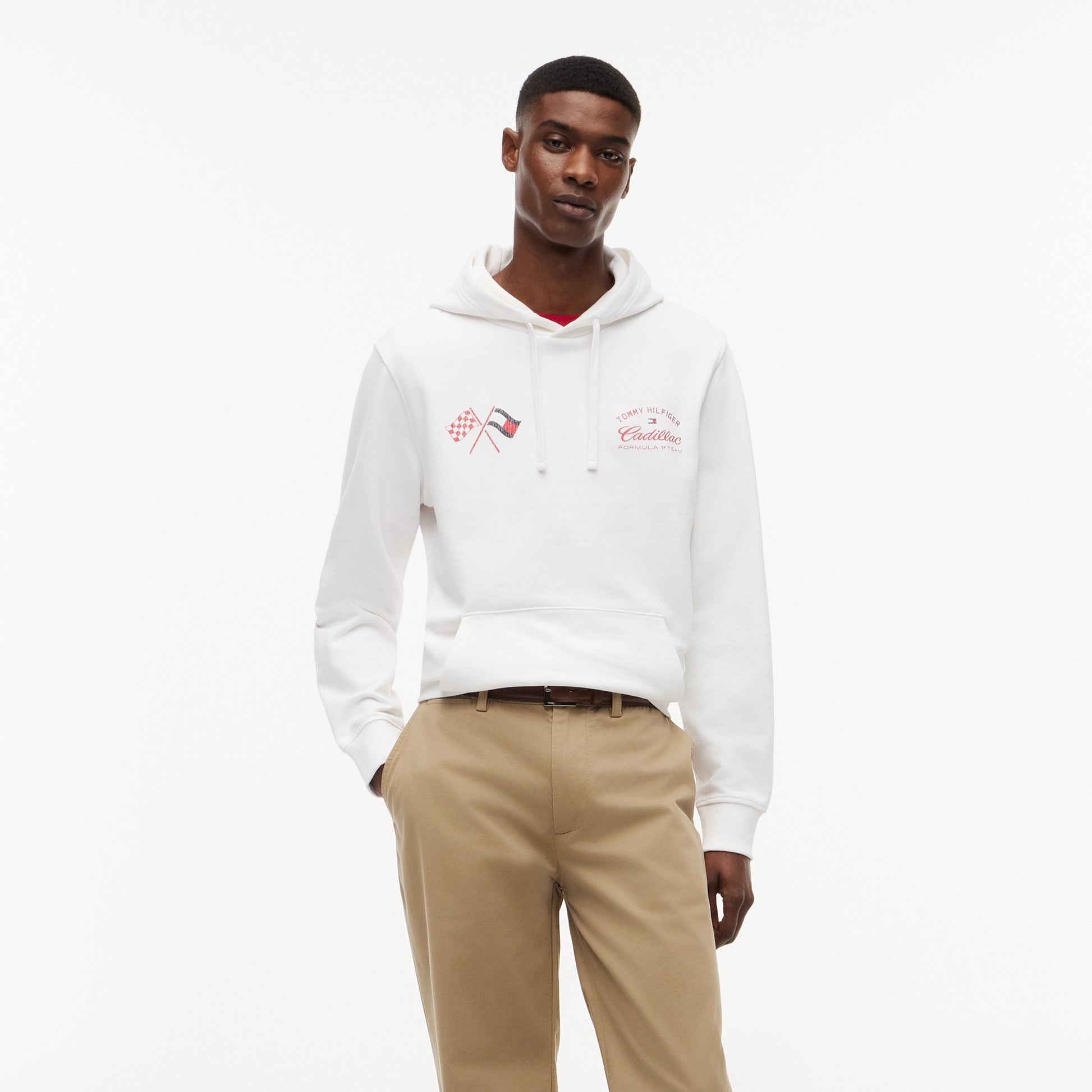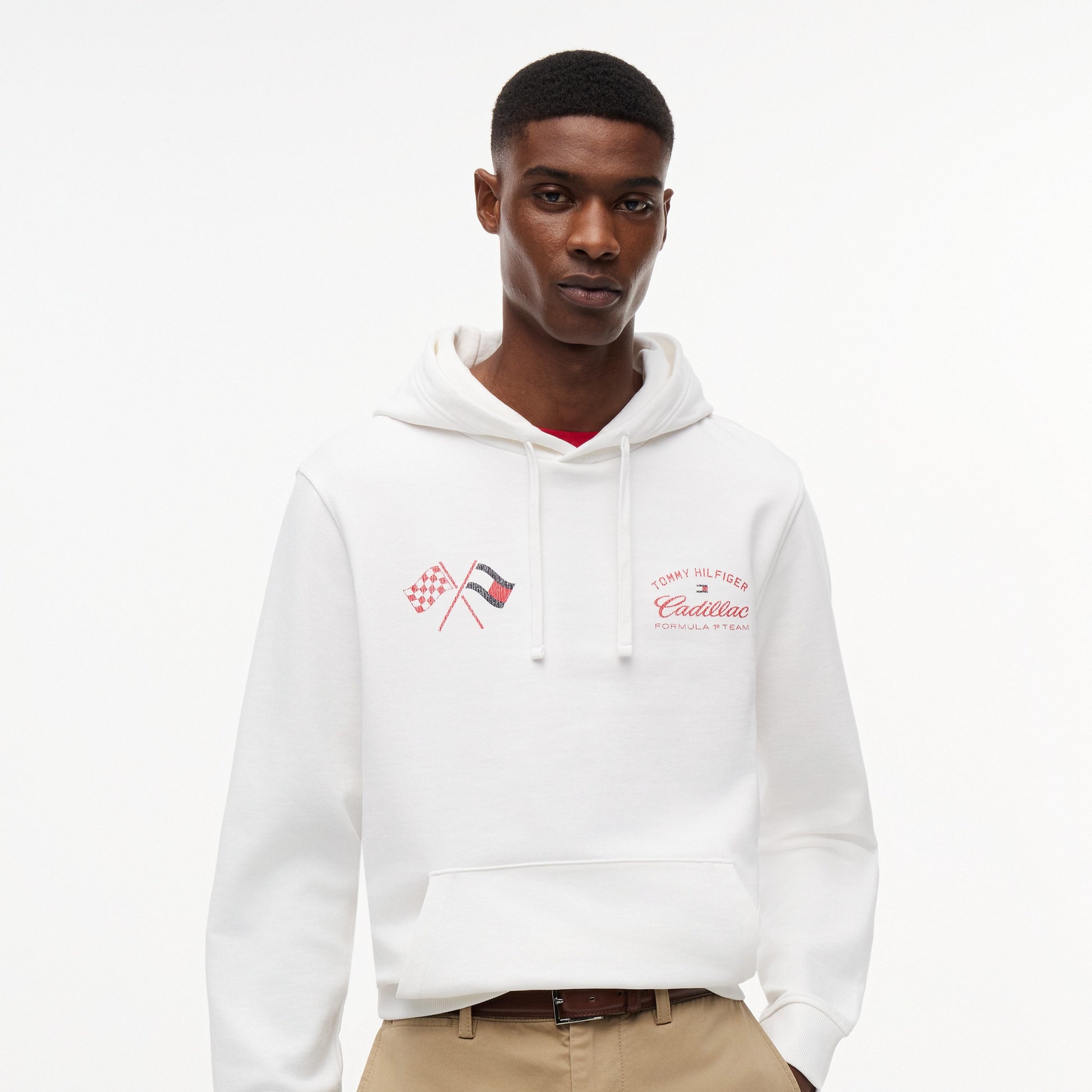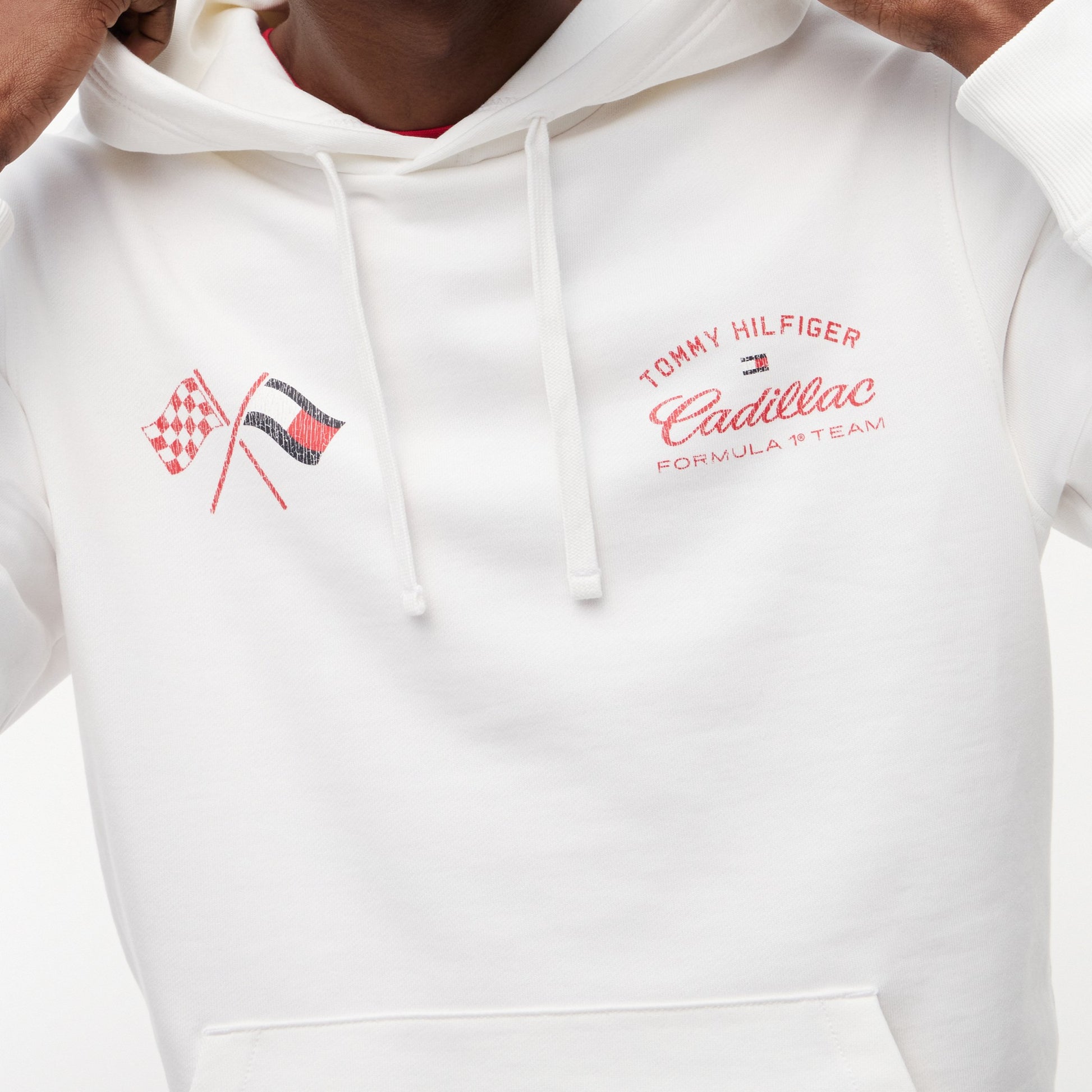 Capture the thrill of the race with the Cadillac F1 x Tommy Hilfiger Speedometer Hoodie for Men in crisp white. This premium men’s hoodie blends American motorsport-inspired design with Tommy Hilfiger’s signature quality.
