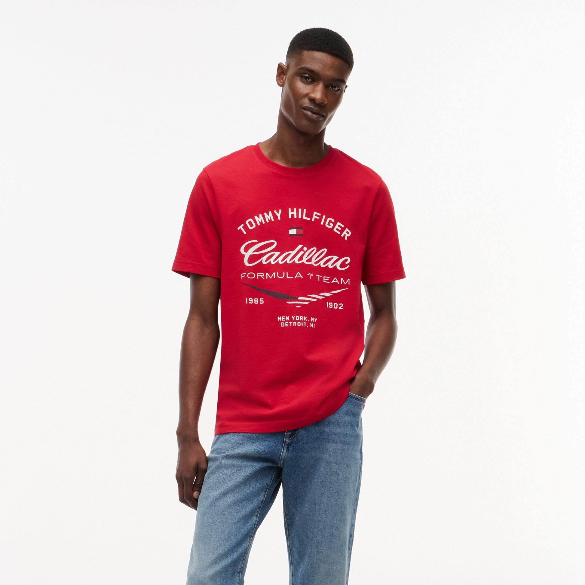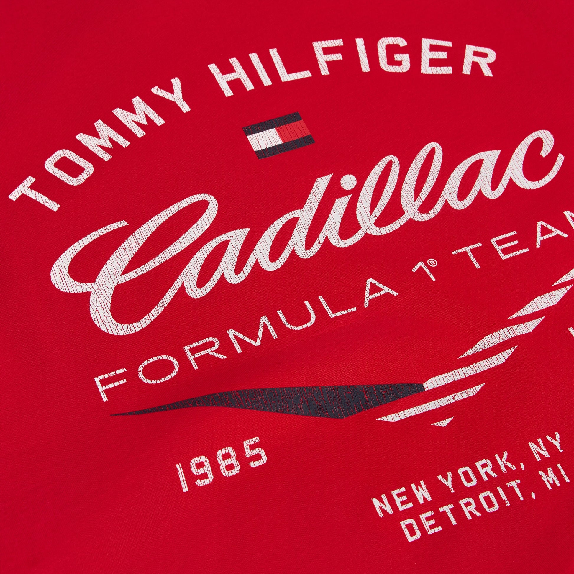 Show off motorsport style with the Cadillac F1 x Tommy Hilfiger Varsity Tee for Men in bold red. This premium men’s T-shirt blends classic varsity-inspired design with iconic Tommy Hilfiger x Cadillac Formula 1 Team branding for standout casual appeal.