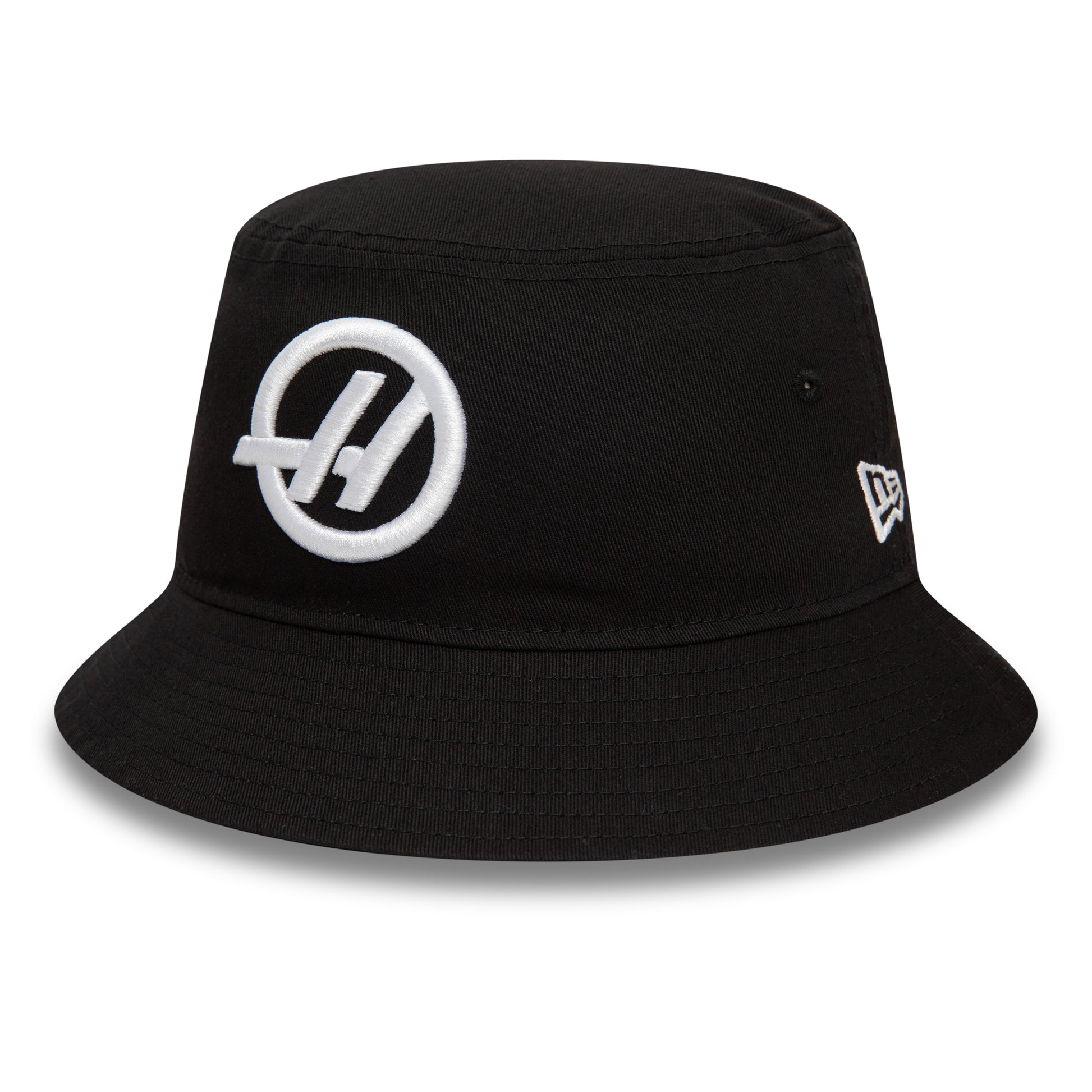 Haas F1 Teams offering to the Bucket Hat market is a classic and simple black Bucket Hat with a clean white Haas F1 Team logo. Made by and featuring the New Era flag.