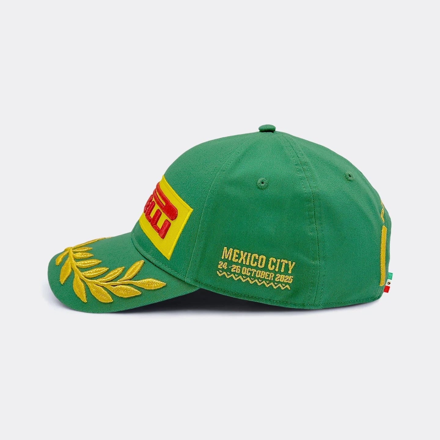 Celebrate Formula 1’s return to Mexico City with the official Pirelli F1 2025 Mexico GP Podium Cap. This vibrant green cap mirrors the design worn by the race-winning drivers on the podium, complete with bold Pirelli embroidery, gold laurel detailing, and event-specific stitching featuring the Mexico City GP dates (24–26 October 2025).