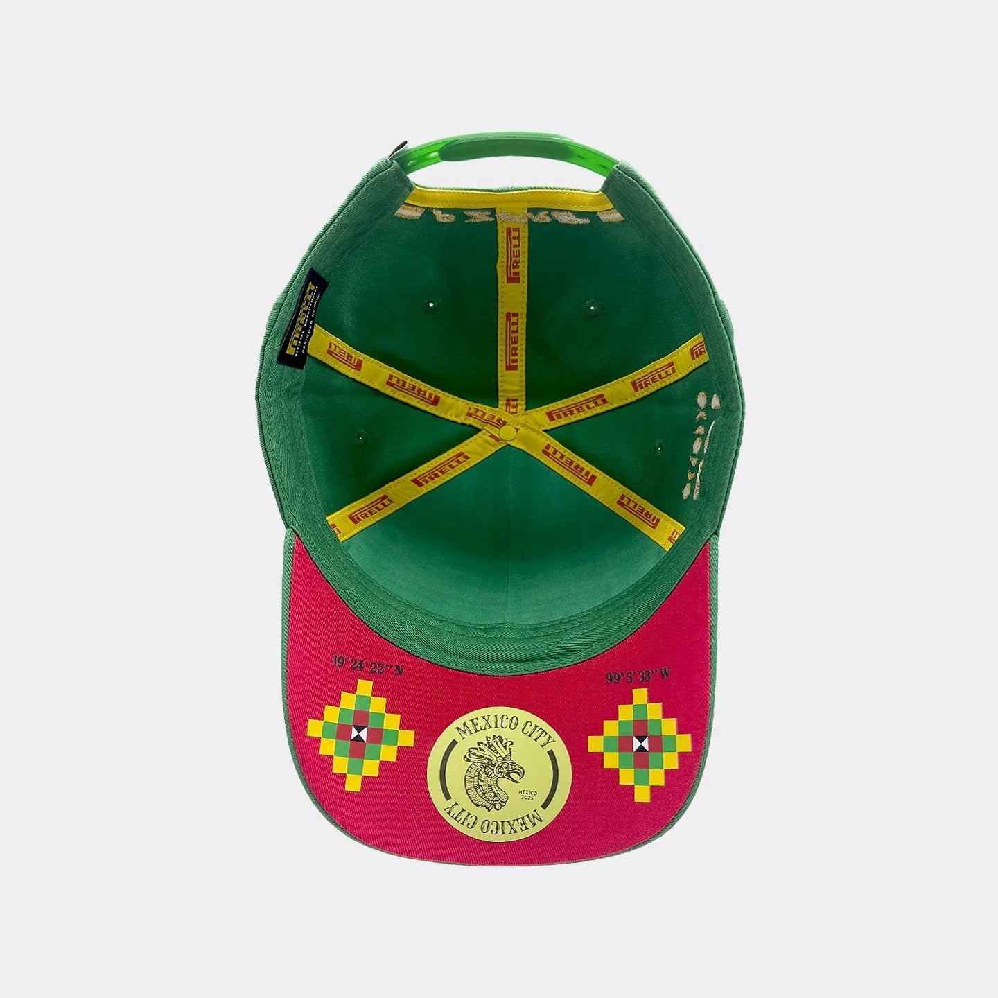 Crafted for comfort and authenticity, it features a structured crown, adjustable snapback closure, and Pirelli’s distinctive P Zero branding. The under-brim pays tribute to Mexico’s national colours and culture with a detailed design inspired by Aztec patterns and the Eagle emblem, adding a unique collectible touch.