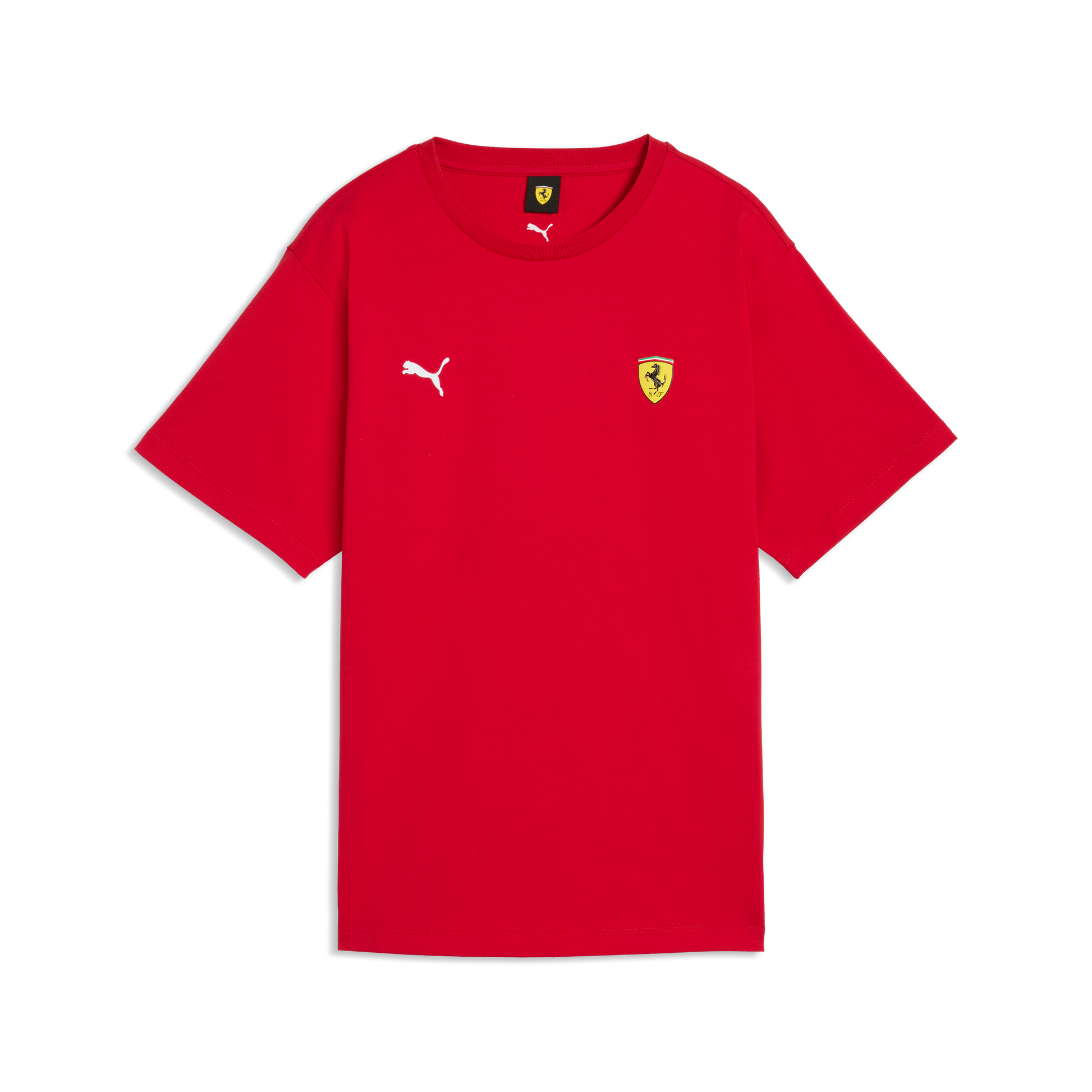 Show your Ferrari passion with the Scuderia Ferrari F1 Graphic Tee for women in Rosso Corsa. This official team T-shirt features a classic crew neck, flattering fit, and bold Scuderia Ferrari F1 graphic branding, perfect for race days, casual wear, or motorsport-inspired everyday style.