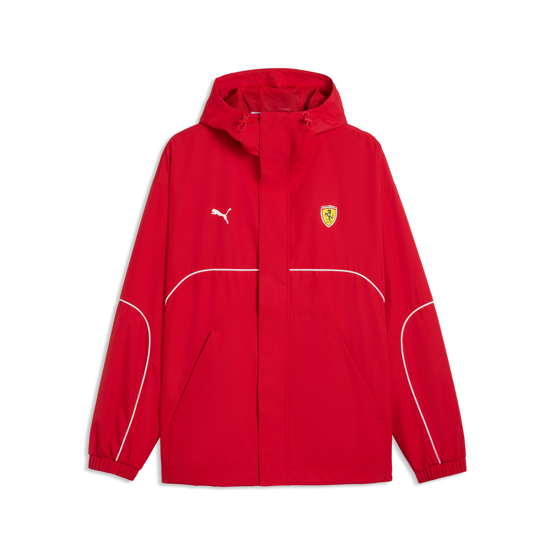 Stay protected in style with the Scuderia Ferrari F1 Rain Jacket for men in Rosso Corsa. This official team jacket features lightweight, weather-resistant construction, a modern fit, and Scuderia Ferrari F1 branding, perfect for race days, travel, or everyday wear. A practical and stylish choice for Ferrari fans.