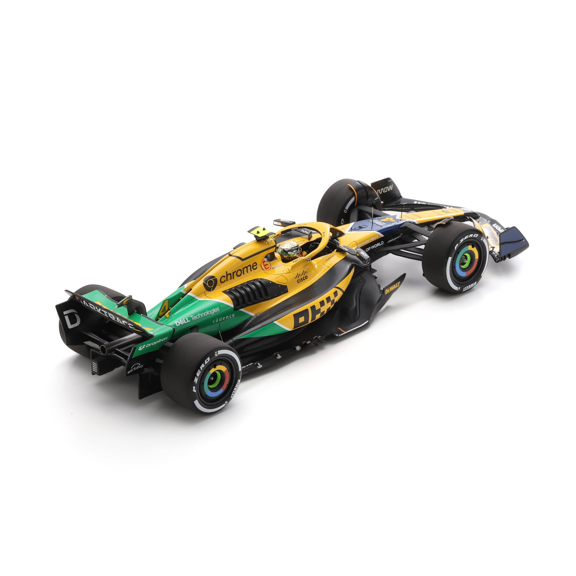 Spark McLaren Racing F1 Racing F1 MCL38 Lando Norris No.4 2024 Monaco GP Senna Livery Car Unisex - Yellow - 1:18 Scale