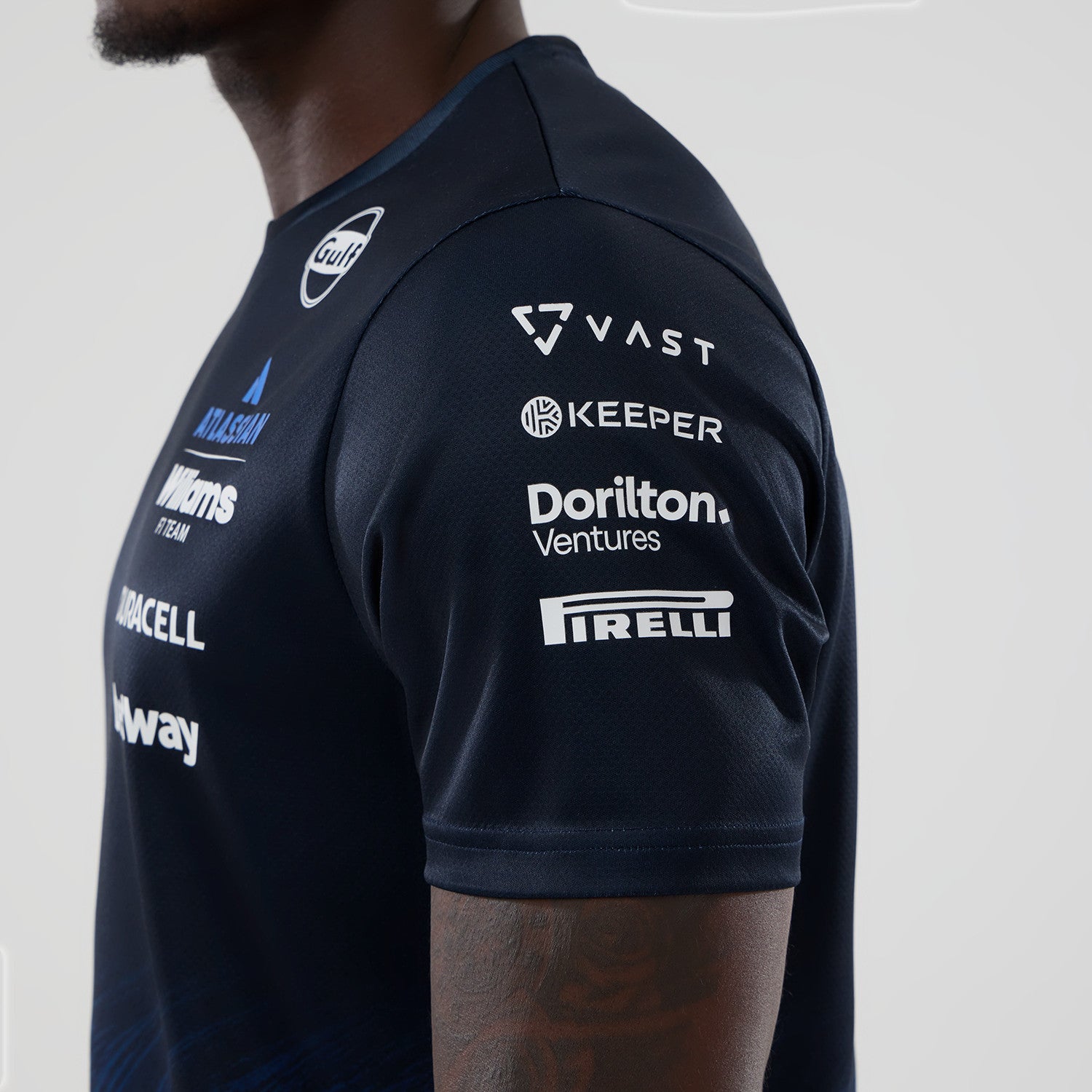The Williams F1 Team 2026 Tech Tee Alex Albon – Men’s (Navy) combines performance-focused comfort with official team style.